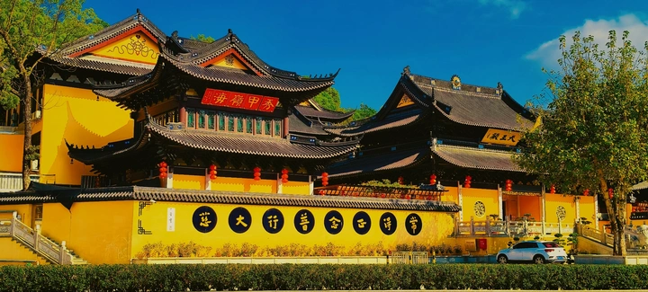行至城南一隅,忽见一抹明黄撞入眼底,在澄澈如洗的蓝天映衬下,竟生出几分庄重与温柔交织的意趣。这便是藏于市井旁的清净地,没有喧嚣的纷扰,唯有岁月沉淀的安然。 抬眼望去,飞檐翘角的建筑错落有致,黑瓦覆顶,檐角的风铃虽未闻其声,却仿佛已在风中轻响。朱红的廊柱与明黄的墙垣相映成趣,檐下悬挂的红灯笼,是岁月里不灭的喜庆,为这静谧的古寺添了一抹鲜活的色彩。 墙面上“常得正念 普行大慈”的字样,笔力沉稳,字字皆透着禅意。行至此处,脚步不自觉便慢了下来,心头的浮躁也似被这清风拂过,渐渐消散。不必刻意寻什么,只是站在这黄墙绿影间,看阳光透过枝叶洒下斑驳的光影,听林间偶尔传来的鸟鸣,便觉心境安宁,万般繁杂皆可抛却。 这里没有车马喧嚣,只有古寺与蓝天相映,草木与禅意共生。偷得浮生半日闲,来这一方天地走走,不必求什么,只需静下心来,感受这份独有的宁静与祥和。愿我们都能在奔波的日子里,寻得一处心安之所,常得正念,心怀慈悲。