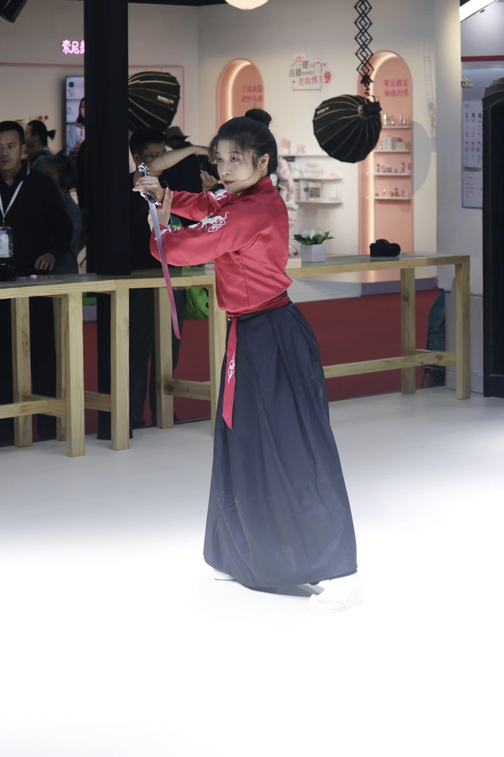 婚博会现场,汉服小妹妹剑舞风华