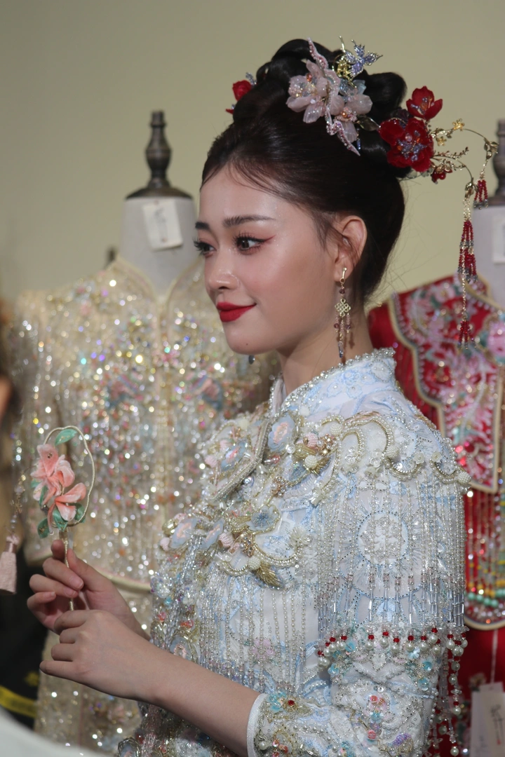 婚博会现场不止模特好看,工作人员一样吸引眼球。