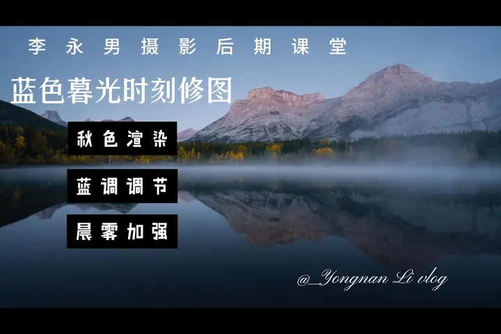 落基山秋色的蓝调时刻充满着暖色和冷色的对比,日出前的高山辉让整个山头变成了粉紫色,非常的具有神秘感。晨雾的加持让这张湖面变得更加魔幻,且看我来如何修这张美丽的秋色作品。