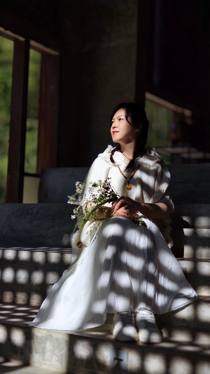 光影在白裙上织出细碎的格纹,手中的花束攥着山野的温柔。抬眸的瞬间,风捎来窗外的绿意,时光好像也慢了下来,把这一刻的恬静与美好,揉成了一首温柔的小诗。 这是在江西景德镇丙丁柴窑拍摄的,当时光影很棒,正好一半落在女孩的衣服上,脸部在光里,于是用手机抓拍下来。