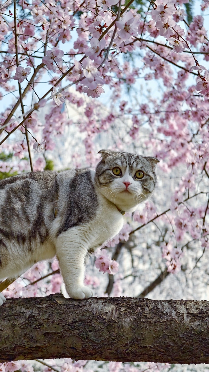 1张猫与樱花的春日蜜语