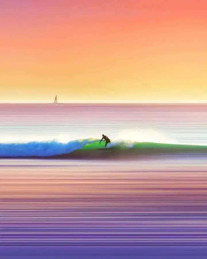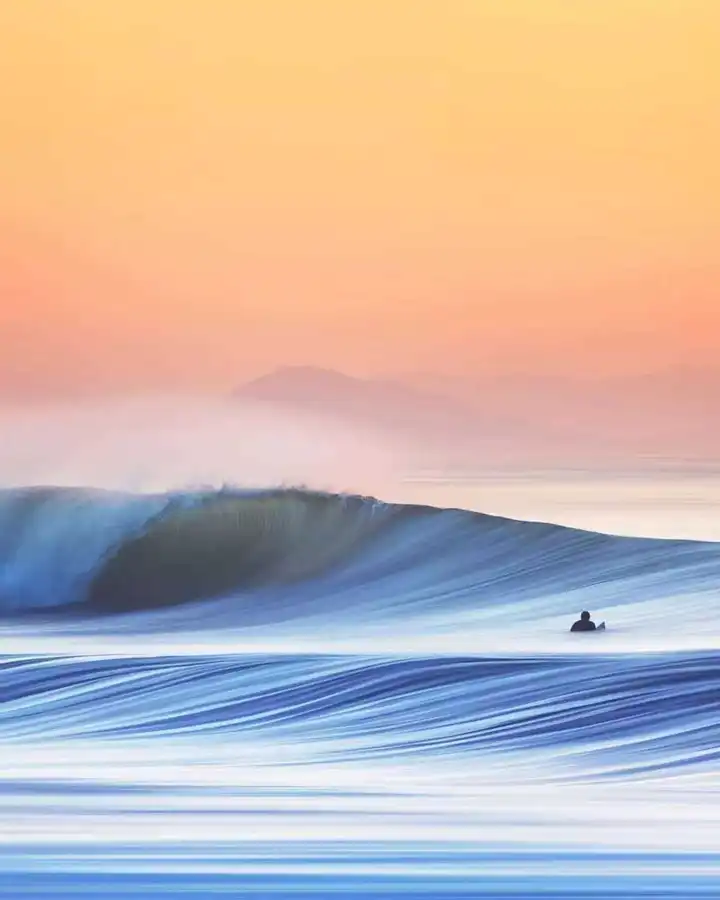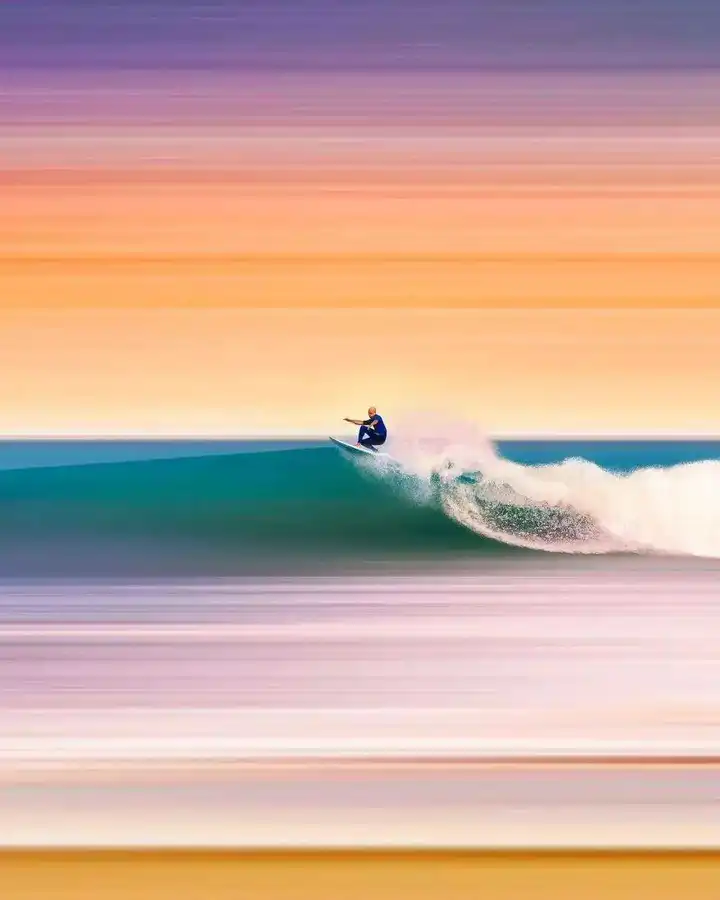 【摄影师Thomas Fotomas:在浪尖书写光影诗篇的人】当代摄影艺术与冲浪文化的交汇处,Thomas Fotomas(托马斯·福托马斯)以其独特的视觉语言开辟了一条充满灵性的创作航道。这位自学成才的艺术家将摄影的纪实性与绘画的表现力完美融合,在每一帧海浪影像中注入超越运动本身的哲学思考,让冲浪摄影升华为一场关于时间、力量与生命律动的视觉冥想。冲浪作为自然诗学的载体Fotomas的镜头颠覆了传统运动摄影的范式。他拍摄的不仅是冲浪者征服浪峰的瞬间,更是海浪本身的生命轨迹——那些被夕阳染成琥珀色的浪脊,在慢门下化作流动的丝绸;飞溅的浪花在高速快门下凝固成水晶般的雕塑。通过精心设计的构图,他将海天交界处转化为抽象的色块分割,使每幅作品都成为自然元素的交响乐章。这种对海浪主体性的强调,体现了他"让海洋自己诉说"的创作哲学。摄影与手绘的跨媒介对话Fotomas最具辨识度的艺术突破,在于他将摄影作品转化为画布,用简约而富有表现力的手绘线条为影像注入新的叙事维度。那些看似随性却精准的白描线条,或勾勒出浪花的运动轨迹,或在画面空白处延伸出想象的波浪,形成具象与抽象之间的奇妙平衡。原创 简墨艺术工作室 视觉日志