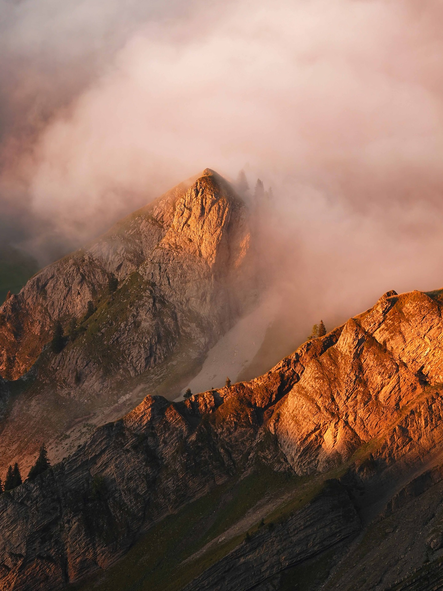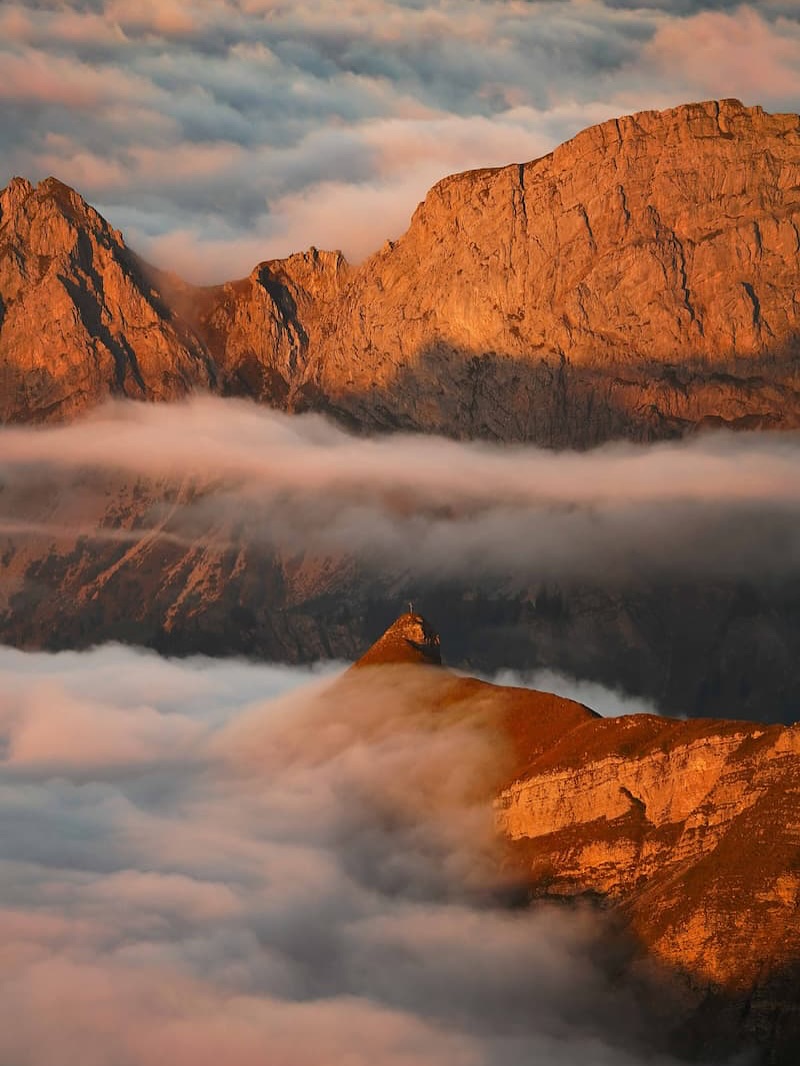nomadict的这组作品展示了阿尔卑斯山脉的壮丽景色,通过不同的光线和天气条件,捕捉了山峰的多样面貌。1. 利用光线:摄影师巧妙地利用了日出和日落时的光线,为山峰披上金色的外衣,增强了画面的层次感和立体感。 2. 构图技巧:通过选择不同的拍摄角度和构图方式,如前景的树木和云海,增加了画面的深度和视觉引导。 3. 捕捉瞬间:摄影师善于捕捉自然界的瞬息万变,如云雾缭绕的山峰和雪顶的光影变化,展现了自然的神秘与美丽。