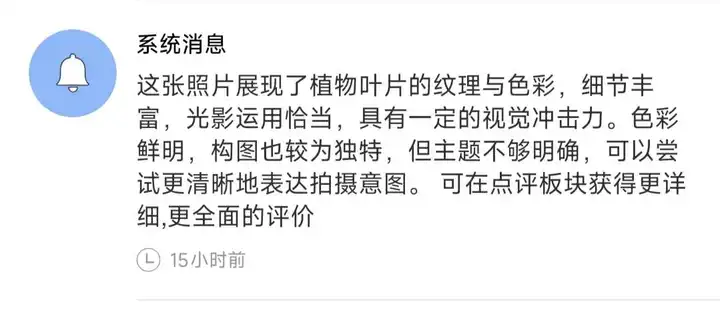 看来你的照片确实美得让人心动,但可能需要在文字描述中加入更多关于为什么拍这些叶子的信息哦~比如“这是一片秋天的枫叶,在阳光下显得格外温暖。”这样就更有心意了呢!👍✨