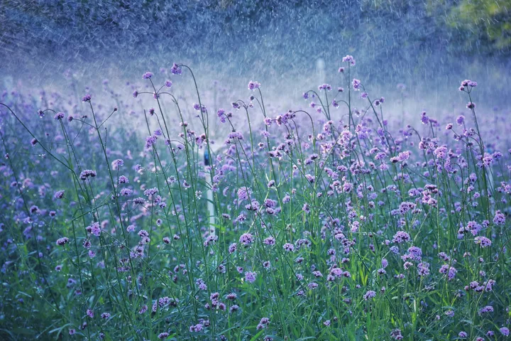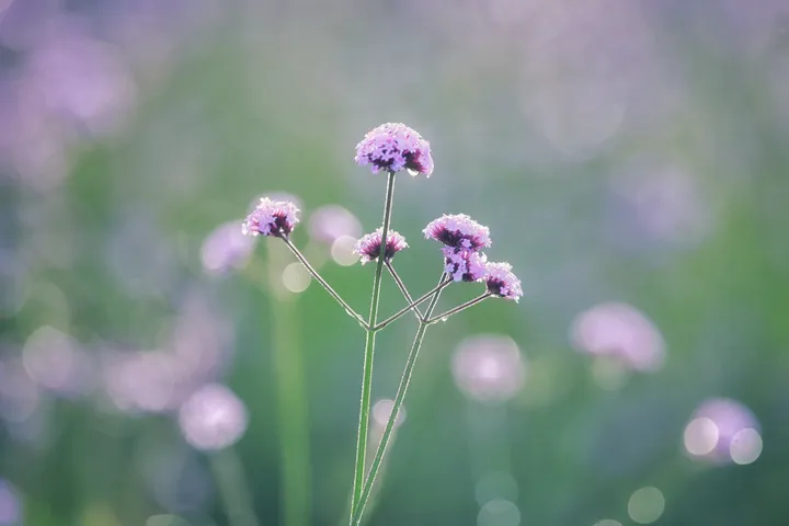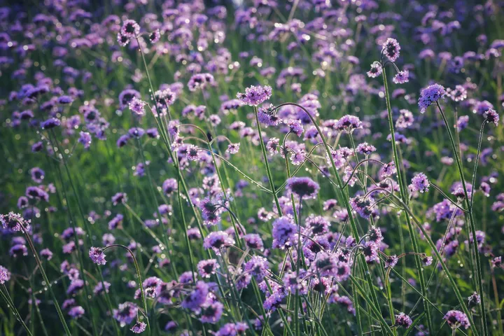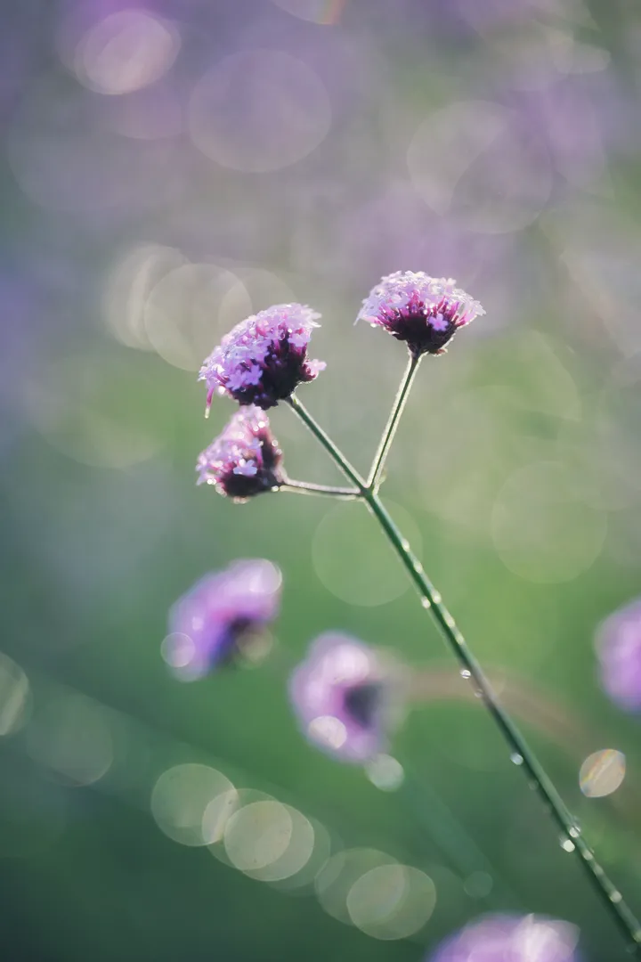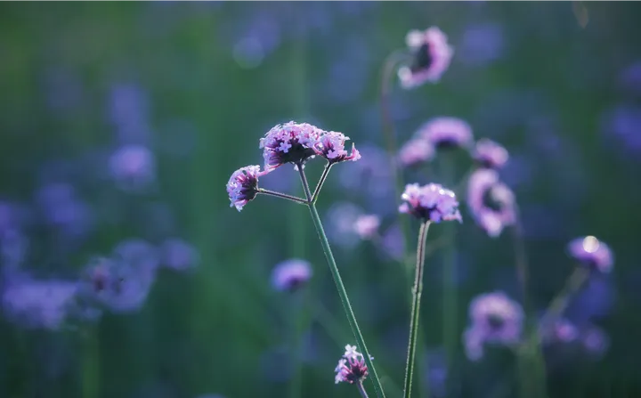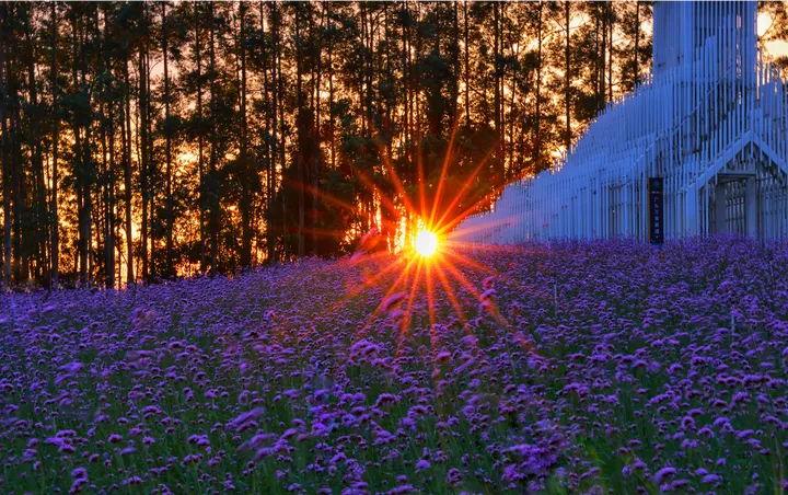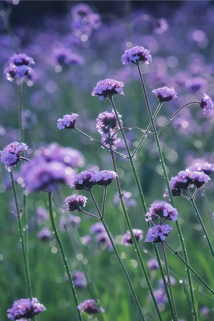落日把光撕成碎金, 漫过整片紫雾似的马鞭草。 风一吹, 连空气都裹着淡紫色的温柔。