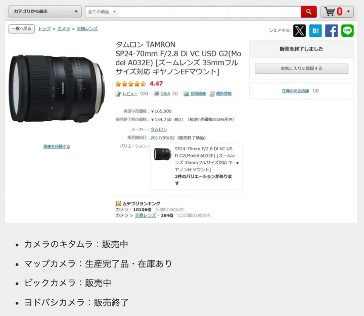 近日,日本多家相机销售商将腾龙SP 24-70mm F2.8 G2(EF卡口)列为停产产品,或许腾龙旗下仍在生产的EF卡口单反镜头可能仅剩SP 35mm F1.4一款。SP 24-70mm F2.8 G2的停产也标志着腾龙的单反时代正步入尾声,但对于消费者而言,此刻或许是入手高性价比单反镜头的良机。
