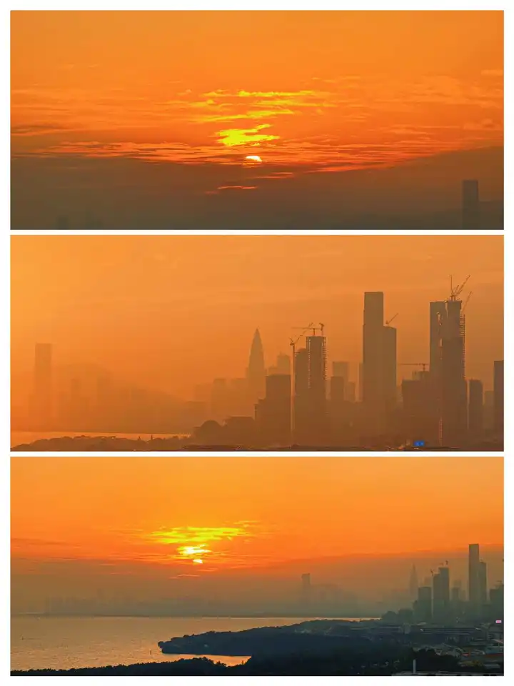 看来这城市真的在“日出东方”呢!不过太阳公公正忙于爬山,忘了按时上班了。