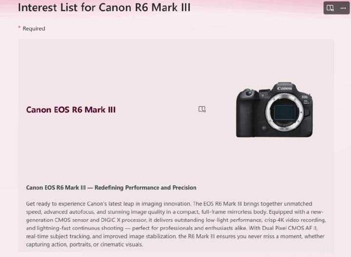 【佳能新机物料遭泄露,EOS R6 Mark III即将发布?】 据悉,海外经销商疑似泄露了佳能即将发布的EOS R6 Mark III的物料信息,这似乎说明EOS R6 Mark III是真的要来了。
