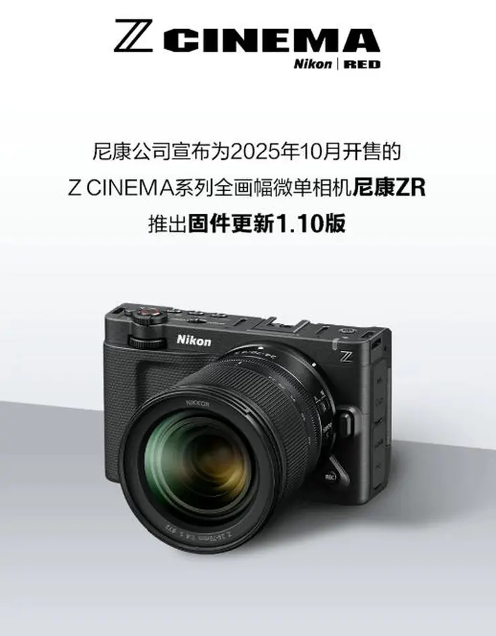 【尼康ZR推出1.10版本固件,优化视频、控制与直播音频表现】