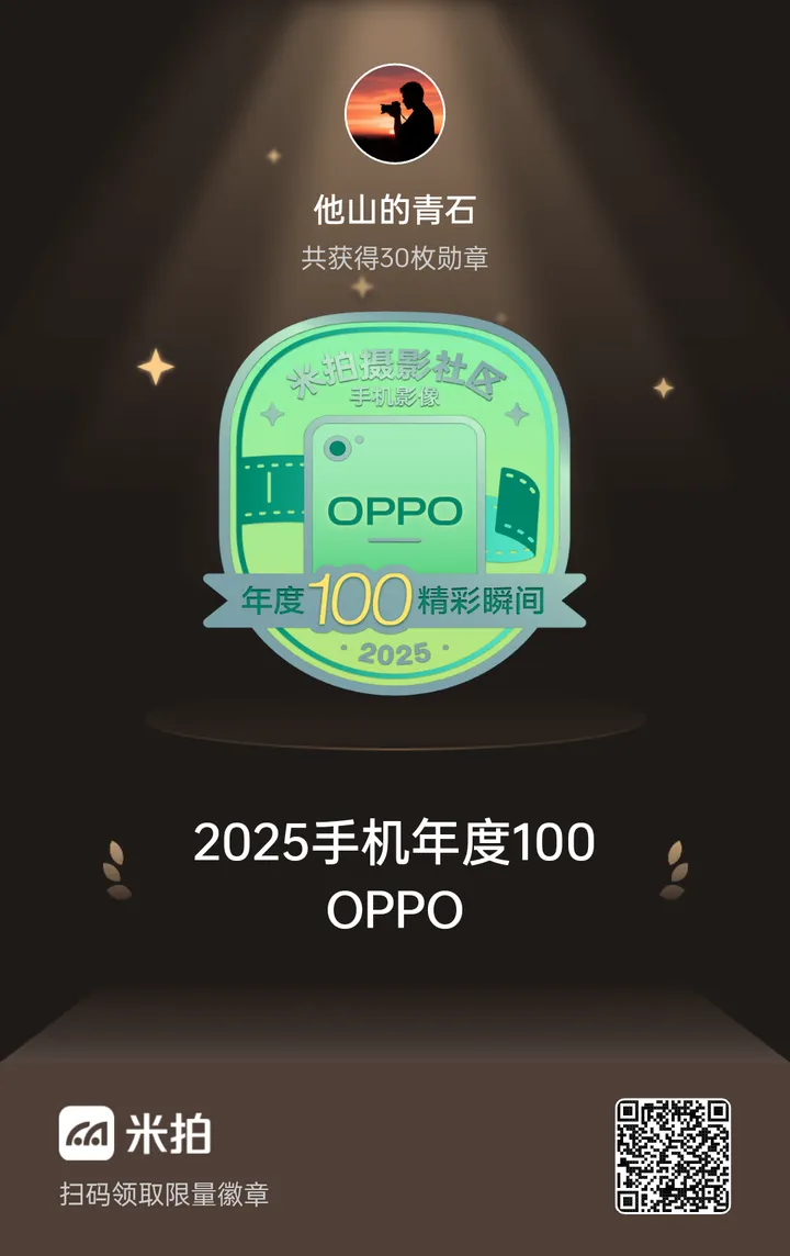 有幸入选米拍OPPO 手机2025年度100位摄影师,感谢米拍 !👍👍👍🙏🏻🙏🏻🙏🏻