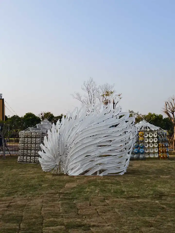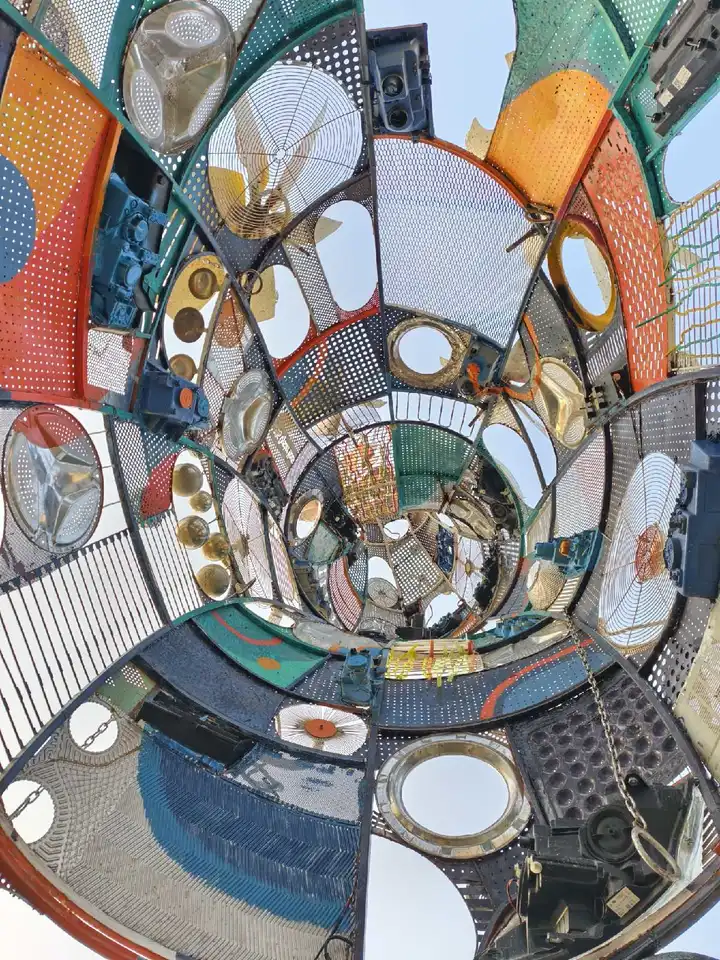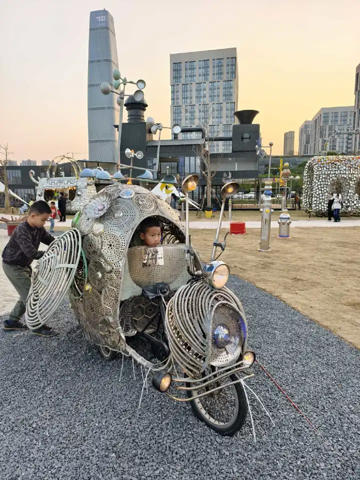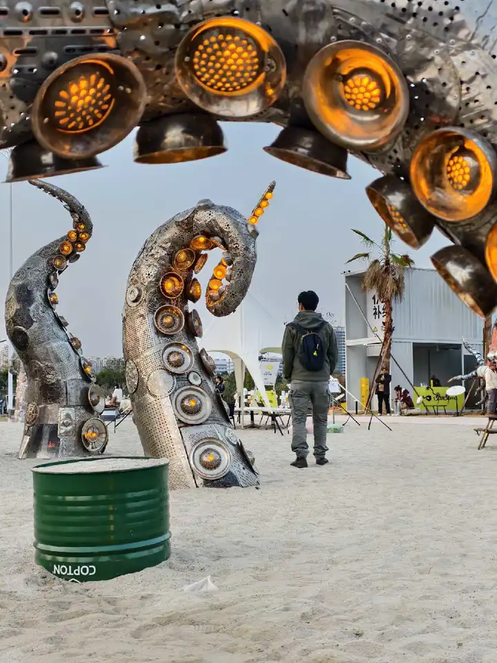 厦门狂荒之地·海神岛 🎪 是一个由废旧物品改造而成的奇幻艺术乐园,位于集美“爱莫屿”。 ◦ 用废弃金属、渔网、轮胎等打造巨型海洋生物装置,如“海神之脊”“潮汐迷宫”,赛博朋克风超震撼! ◦ 艺术家“一元”参与设计,传递环保理念,互动性强(可攀爬、触摸装置)。