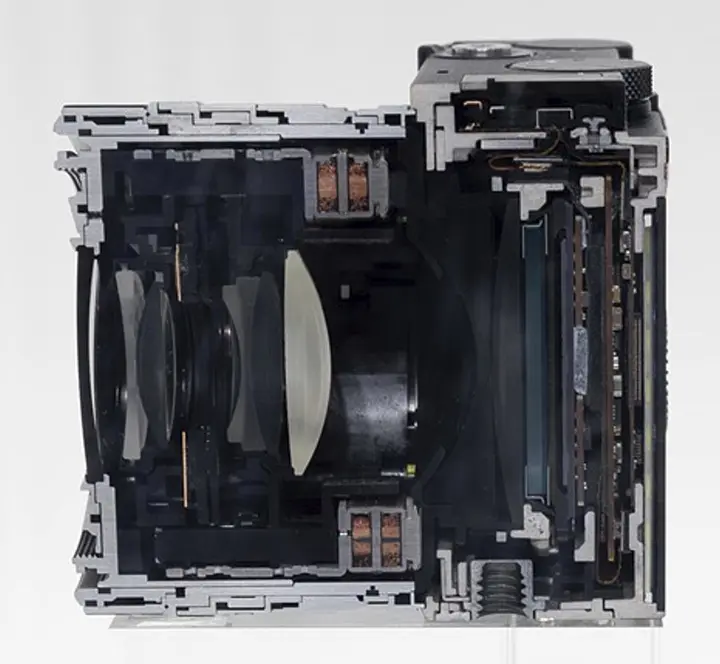 在本次CP+2026现场,索尼展出了一台被拆解的RX1R III机身。从展品可以清晰看到,其镜头几乎紧贴传感器,这意味着每一台相机在出厂前都必须经过极为精密的校准,以确保画质达到最佳水准。