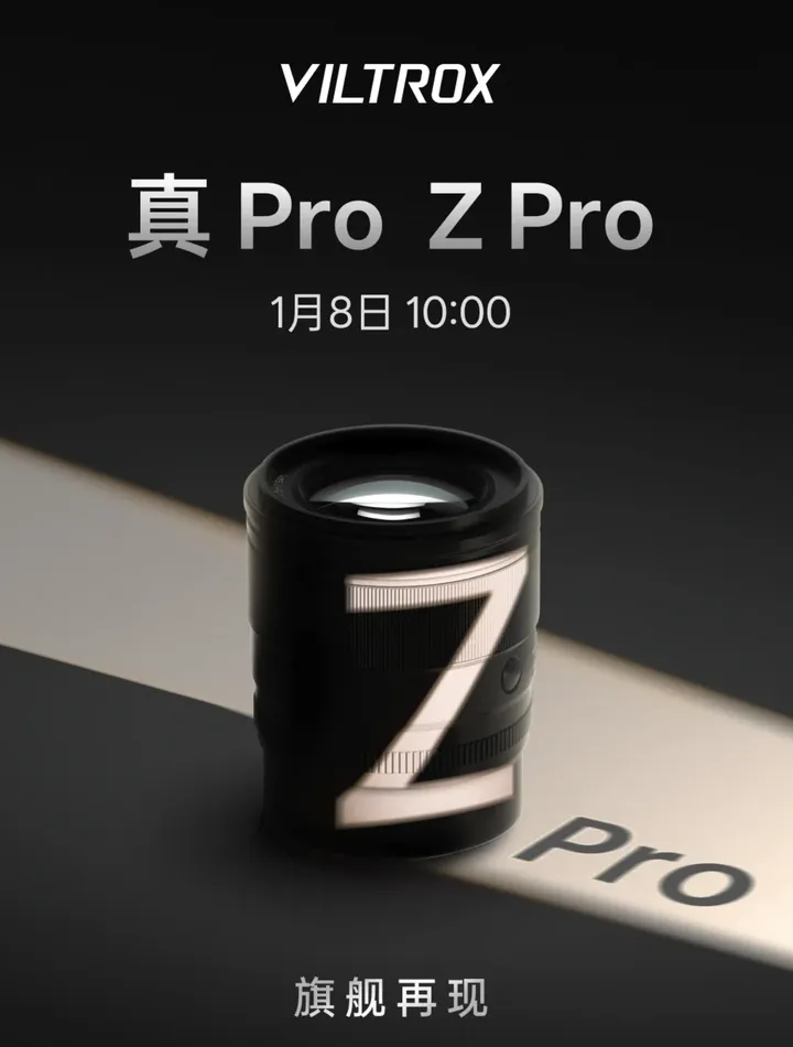 【唯卓仕发布新品预告!将推出Pro级别Z卡口镜头】 近期,唯卓仕发布新品预告,预示将推出一款Z卡口定焦镜头。据透露,该镜头将定位Pro级别,预计于2026年1月8日10:00正式亮相。大家不妨猜猜,这会是一款什么规格的镜头?