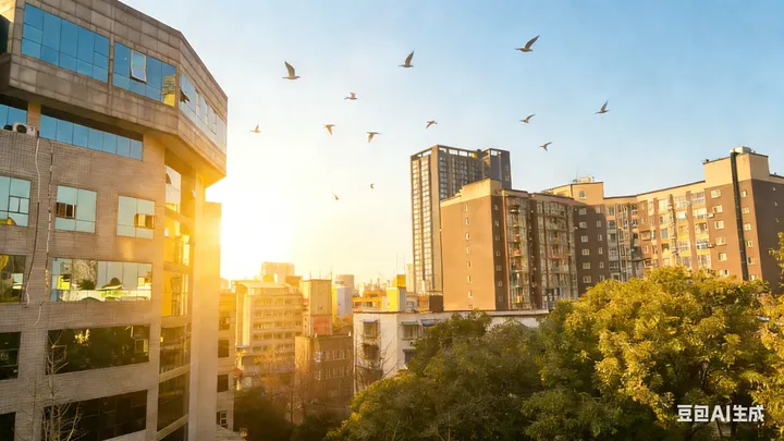 冬至的光,是揉碎的金箔,洒在成都的街巷楼宇间。上帝之光穿透云层,织成一张温柔的网,网住满城烟火。 飞鸟掠过天际,翅膀驮着细碎的暖阳,在楼宇间划出灵动的弧线。风里裹着银杏的余香,与城市的呼吸相融,这一刻,喧嚣都慢了下来,只剩暖阳、飞鸟,和蓉城独有的温柔缱绻。