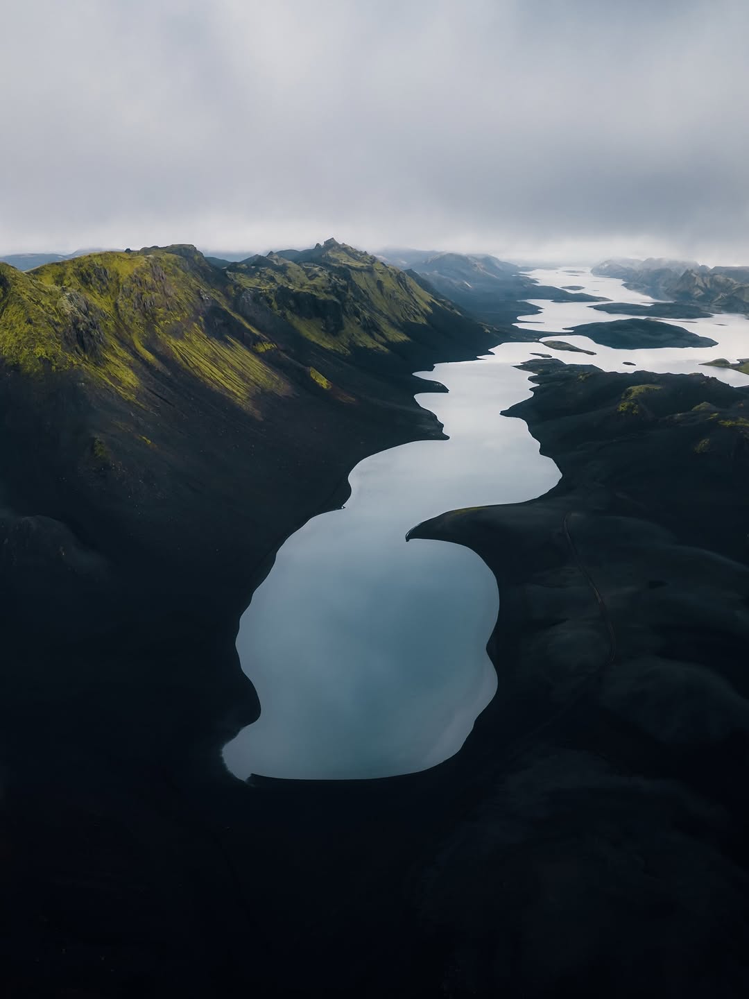 3. 苔藓绿与黑沙的碰撞,冷冽色调中藏着最原始、最安静的生命力。