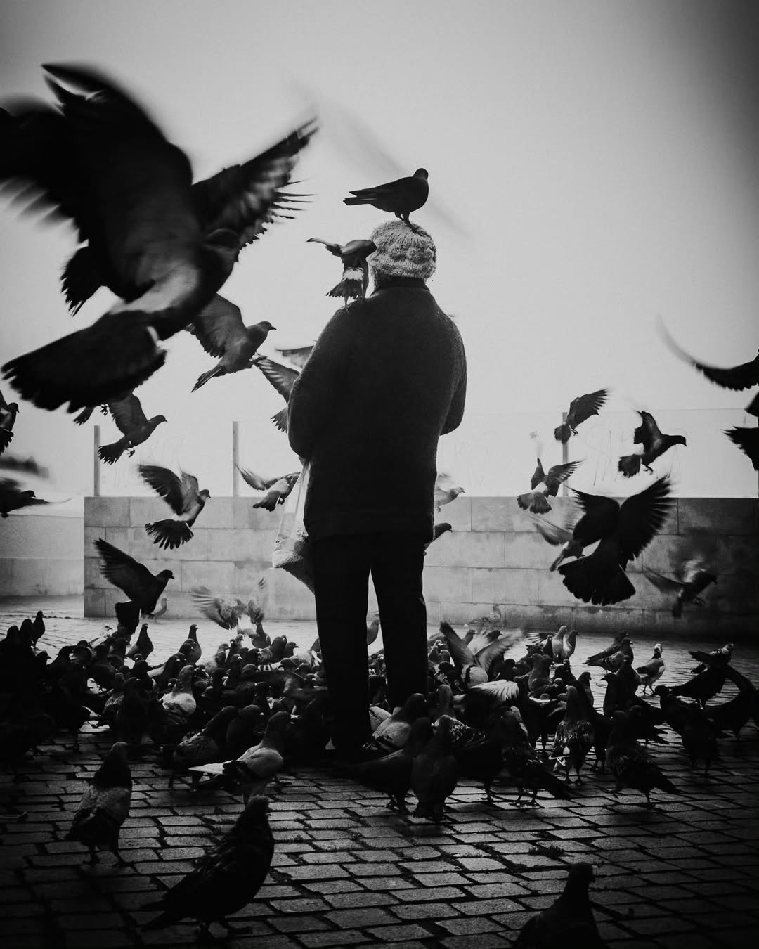 3. 人与鸟的互动充满了故事感,无论是头顶停歇的宁静,还是独自穿行的孤独,都直抵人心。
