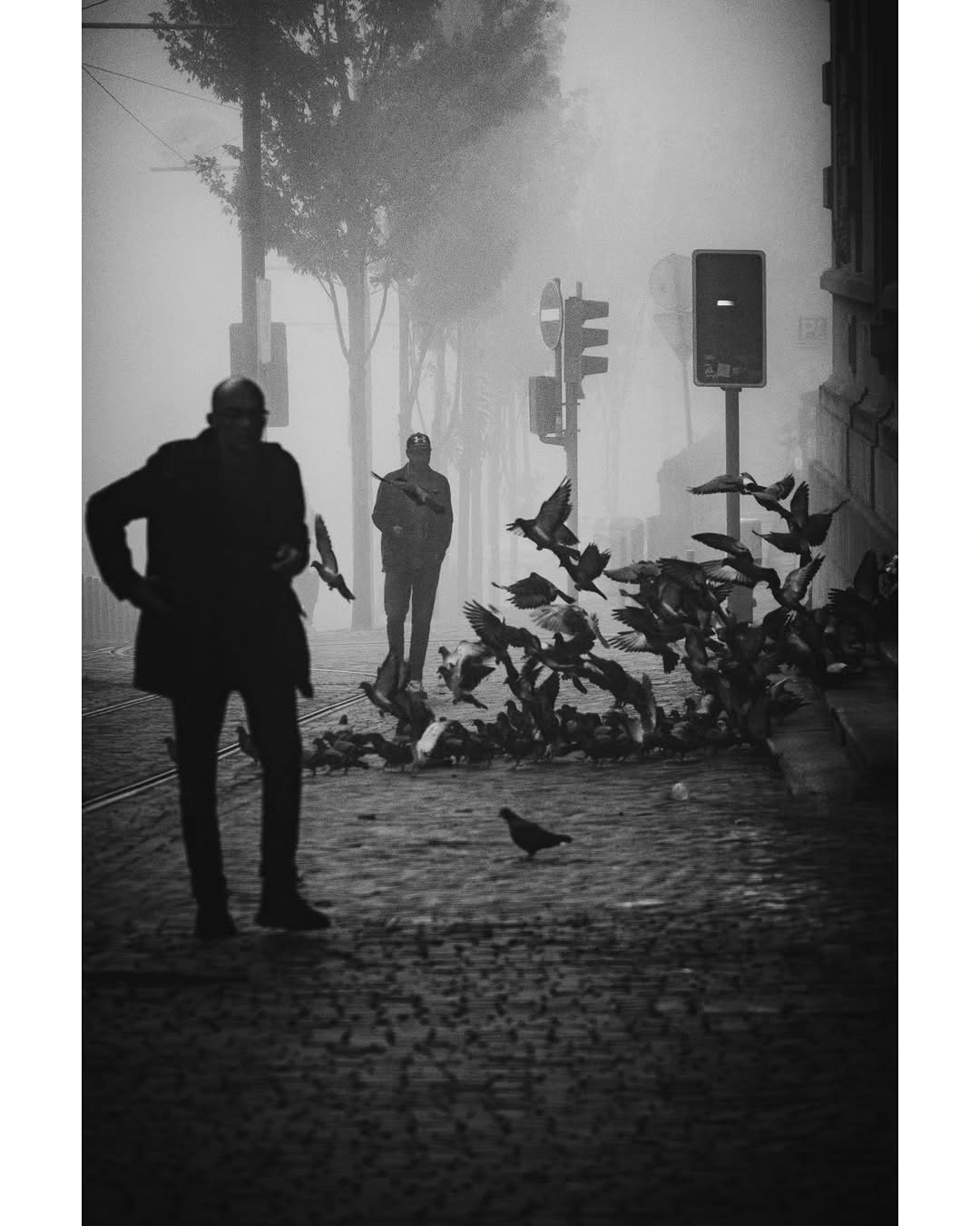4. 雾气是最好的天然滤镜,它柔化了坚硬的线条,让原本冷峻的街头多了一份温柔的诗意。