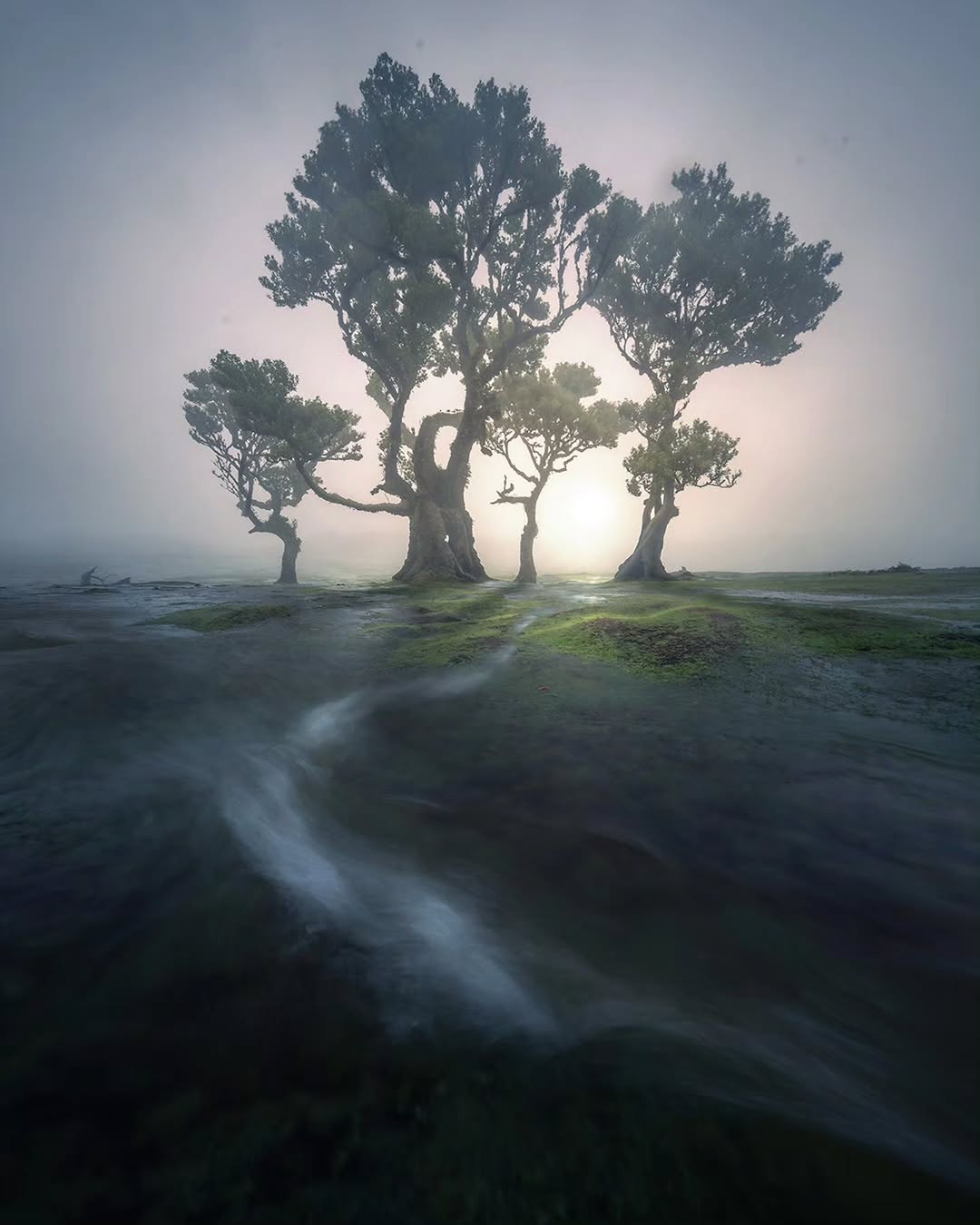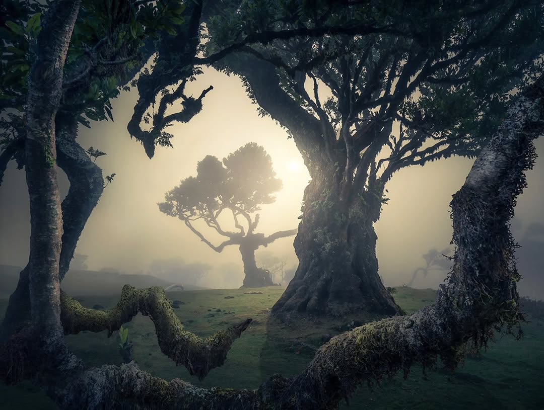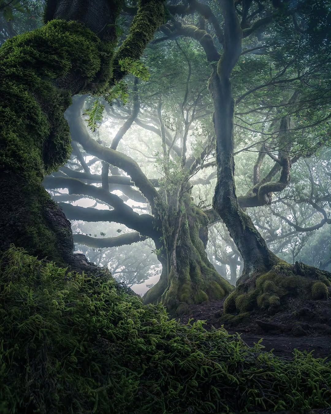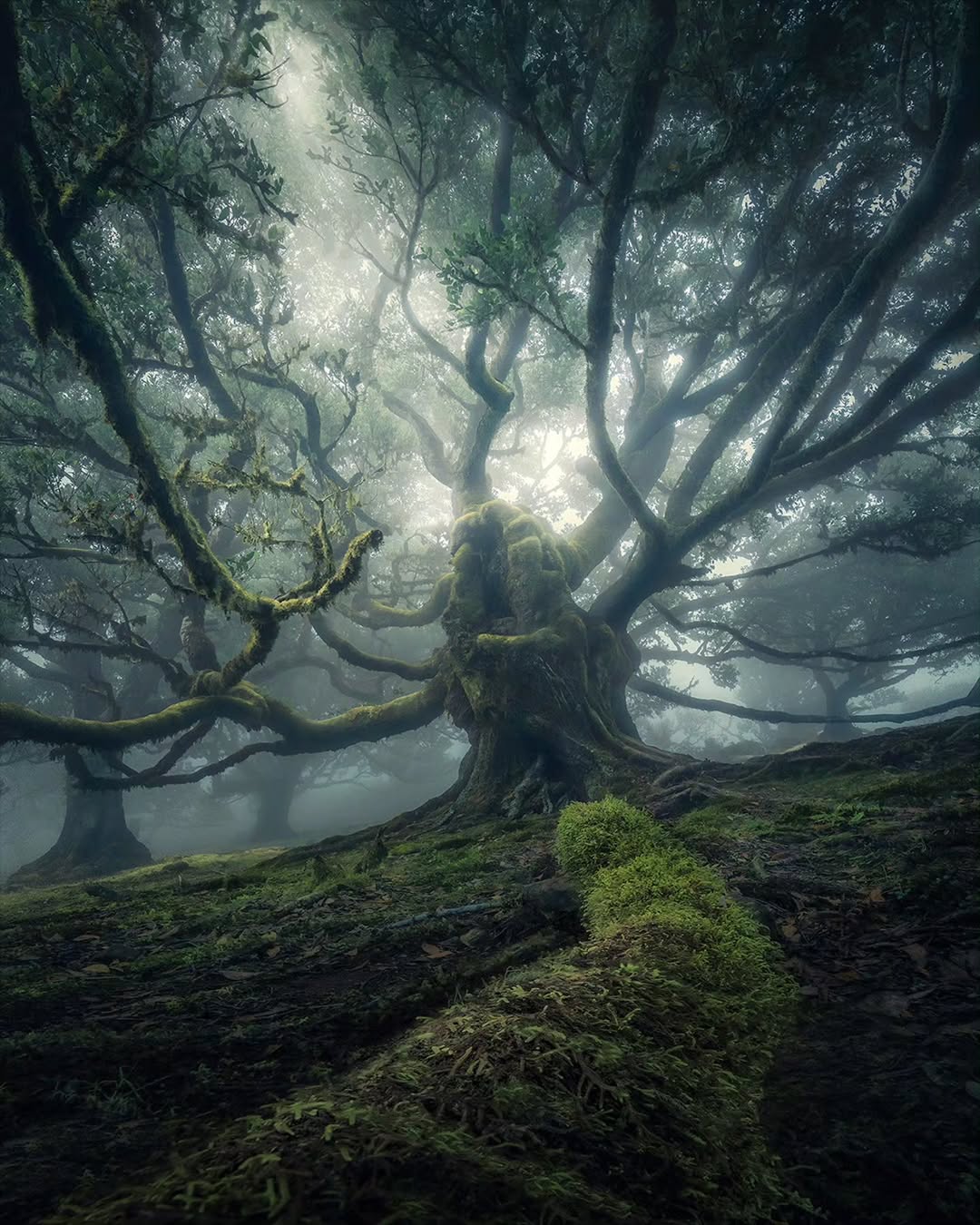 当第一缕光穿透迷雾,洒在长满青苔的古老树干上,仿佛误入了一个被时间遗忘的童话世界。