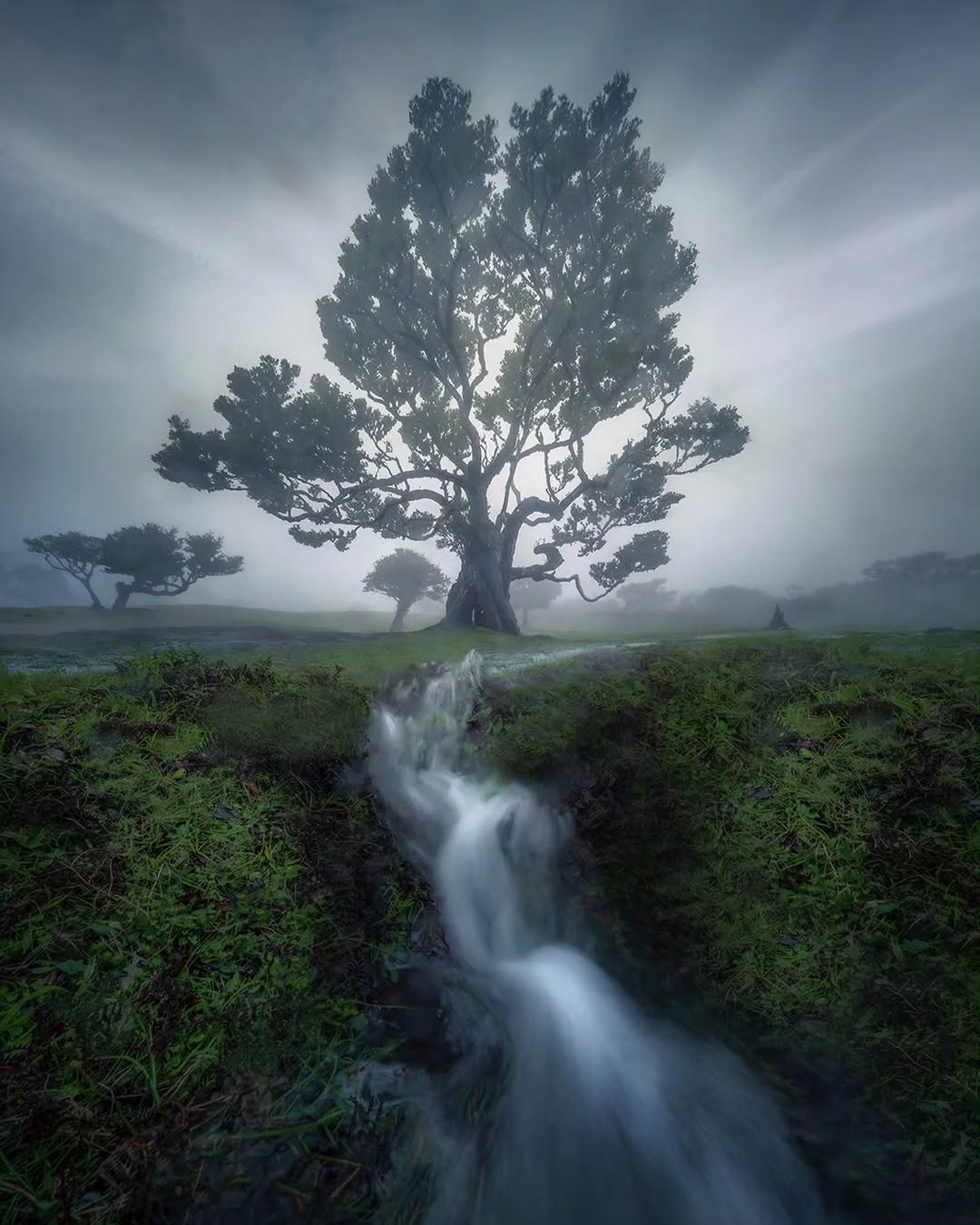 3. 质感的对比:粗糙的树皮、柔软的苔藓、如丝绸般流动的水,不同质感的碰撞,让画面摸起来都很有手感。