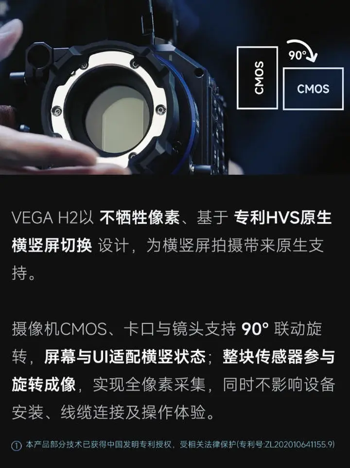 今日,博冠正式推出VEGA H2全画幅6K摄像机。这款摄像机采用2450万像素全画幅CMOS,并且CMOS、卡口与镜头支持90°联动旋转,屏幕与UI适配横竖状态,整块传感器参与旋转成像,实现全像素采集,同时不影响设备安装、线缆连接及操作体验。