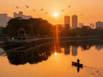 锦江晚渡,光影揉碎了暮色,飞鸟伴渔歌,扁舟载着诗意归