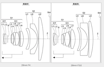 【富士公布28mm、35mm F4.0镜头专利,或为GFX系列便携机身开发】 近期,富士公布了两款镜头专利,分别为28mm F4.0和35mm F4.0。从设计参数来看,28mm镜头可能无法完全覆盖GFX(44×33mm)中画幅系统的像场,而35mm F4版本则预计能够覆盖。 需要注意的是,两款镜头的后镜组设计均较为靠后,从结构上推测,可能并非为传统可换镜头系统设计,更倾向于应用于固定镜头的高端机型,比如GFX100RF。