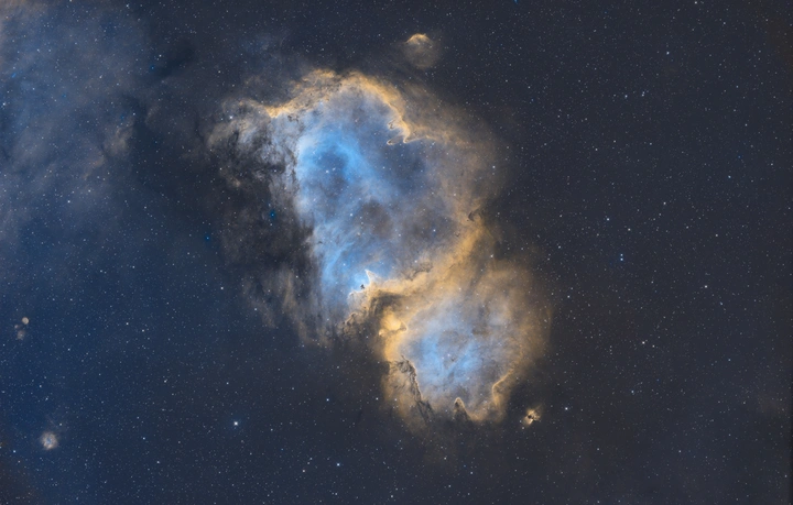 夏季的知名深空天体,一片很大的发射星云,窄带拍摄,连续两晚出摊,累计8小时左右。sho哈勃配色。