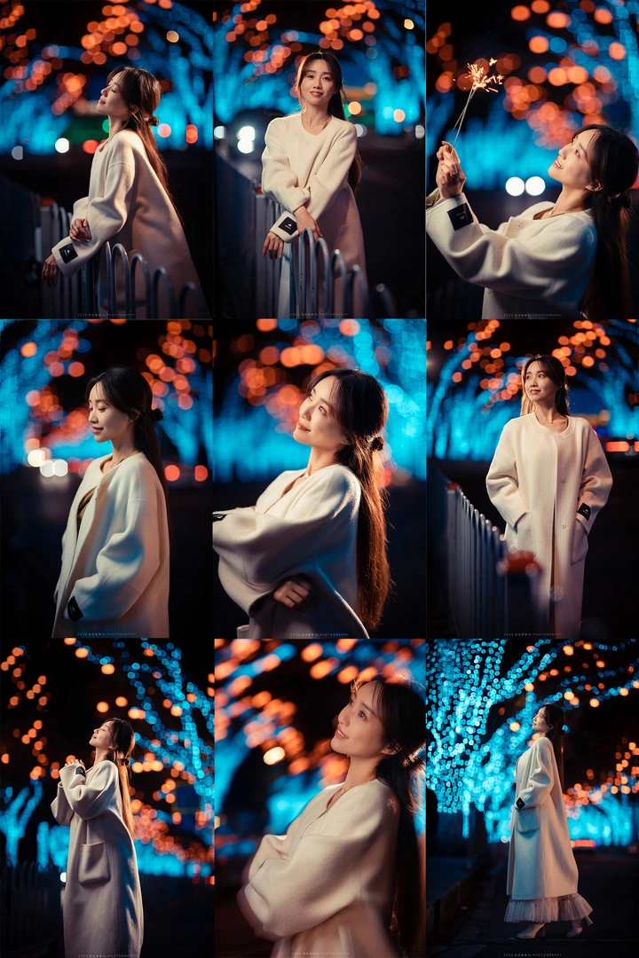 一组玉兰花的夜景人像 一支闪光灯,两支常亮灯 相机:5D4 镜头:35,85 闪光灯:神牛AD300PROII 常亮灯:永诺150W,100W。