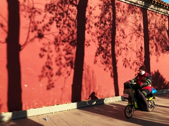 走过长安街听着歌「幸福路上」,这组照片在冬日里希望能带来的红墙暖暖的照片[微笑]