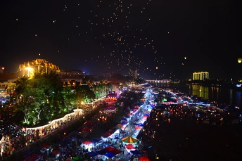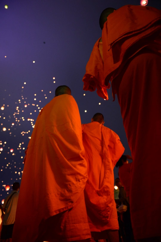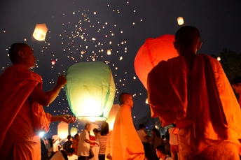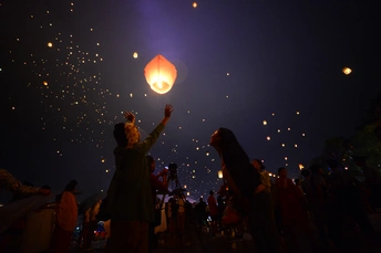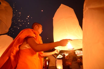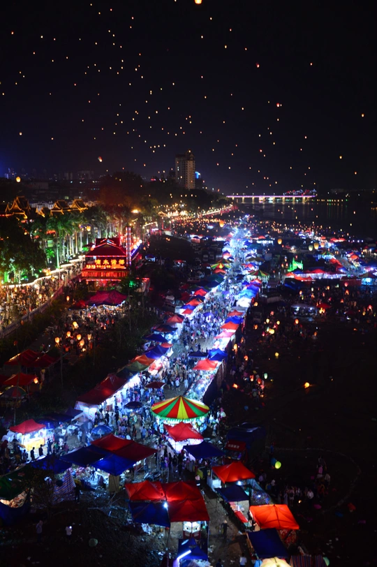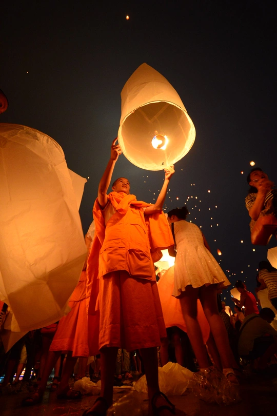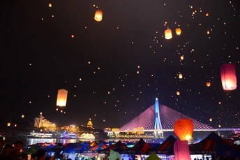 西双版纳 景洪,泼水节前夜 人们放孔明灯祈福