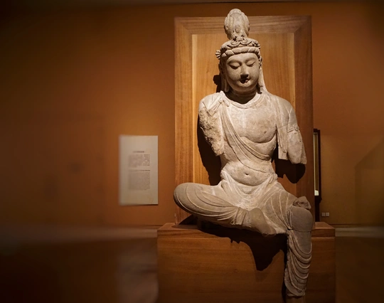 源自天龙山石窟,说起天龙山石窟,其实比三大石窟要美的多,可惜被美国搬空了。第一次在国博见到它,本不懂欣赏佛像的我,发现他可真美。宁静祥和,虽然被搬离原生的地方,他依旧兀自宁静。