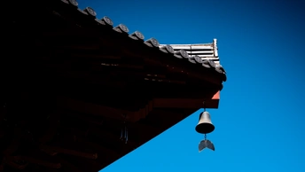 风铃在古代有好几个称呼,如“风铎”、“宝铎”、“檐铃”等。常悬挂于大殿、佛塔等建筑物檐角下方。无人敲击,有风则自鸣,故名“风铃”。钟铃文化在中华大地上由来已久,大量的考古资料将钟铃文化的源头追溯到新石器时代晚期。“挂月随映落满屋,天涯相隔系铜铃。”寺庙建筑四角悬挂着的风铃早已超越了“装饰”的作用,它们承载着中国哲学文化的意涵,以及人们的美好向往。清脆的铃声搅动着清风,掠过修道人的耳鬓,划出悠远的佛音。