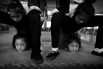 杂技艺术在中国已经有2000多年的历史。随着社会的发展,人们观念的转变,这门艺术已经渐渐被世人所淡忘。作为中国特有的艺术形式,随着各种视觉文化,快餐娱乐的泛滥,杂技这一民间艺术形式及相关的艺人的生存状态也迎来了新的挑战和机遇。一方面,大部分地区的杂技团体正在迅速消亡;另一方面,杂技艺术和艺人也得以在更广阔的舞台上展示他们的魅力。以前学杂技的孩子主要是为了掌握一项生存技巧和武艺,现在的中国家长很少让孩子学杂技,以致产生杂技文化传承等问题。从这个问题来剖析,本专题主要用纪实摄影的表现形式和以纪录片为辅助来表现目前杂技学校孩子们训练的生活状态及其内心变化,从而让人们关注和了解杂技学校孩子的成长问题和杂技文化传承的状况。