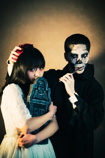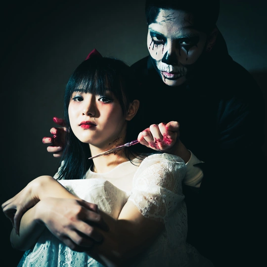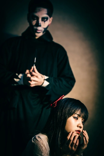 摄影:王斐然 出镜/造型:桔子(血腥玛丽) @廖宇程(死神妆造:馄饨) 冰淇淋(被死神追杀的少女妆造:馄饨 ) 联办:胖达约拍/扩以/里漾/星团传媒/宇程聊摄影