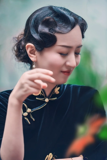 她身着一件黑紫色的金丝旗袍,舒缓闲适,安然静谧,显得又高贵又端庄,分外地吸引人。坐、立、行、走中规中矩,不似张扬,自有一份摄人心魄的气场。举手投足间,流露出端然与雅致,一颦一笑间,自有一份似水的娇羞。