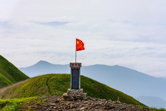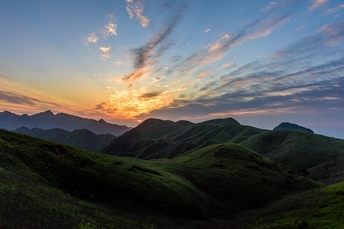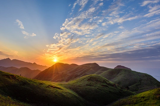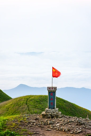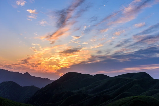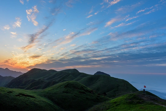 2021年4月29日,武功山反穿路线上,发云界之巅的日出云海。