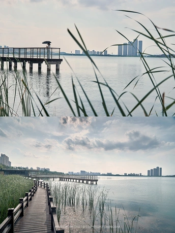 长沙松雅湖湿地公园 🏞目的地攻略:虽然看天气预告,知道晚霞是看不到了,但是还是过去走走,松雅湖是湖南省最大的生态湿地湖泊,松雅湖生态公园将规划建设“一心、五轴、八区”,即以松雅湖为中心,由湖心散发出五个生态景观轴。大门口停车上附近有一个水上的图书馆,还是不错的。 🚗交通攻略: 地铁:附近最近的地铁站是3号线的松雅湖站,但距离景区也有2.5公里左右。 公交:滨湖路东五路口 - 公交站1.1公里途经公交车: x225路 滨湖路东六路口 - 公交站1.2公里途经公交车: x225路 香堤路捞刀河路口 - 公交站1.4公里途经公交车: x212路 💗旅途感受:遇到天气好,能看到晚霞,美美哒。 💡旅行贴士:做好防晒工作,虽然我已经放弃抵抗了,晚上人会蛮多的。因为面积很大,总用地面积469公顷。我只走了大概1/4的路程,可以带个滑板/溜冰鞋/系行车。对了里面还有一个沙滩🏖,可以带小朋友玩水,免费。
