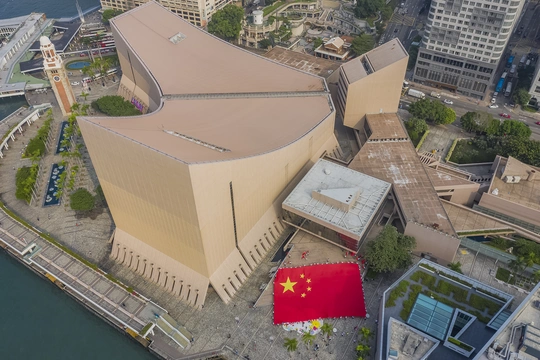 在尖沙咀海濱,象徵着全中國56個民族的56名護旗手,豪展30米巨型國旗。不遠處, 「我和我的祖國,一刻也不能分割。」 耳熟能詳的歌曲傳入耳中,路邊揮舞着紅旗的市民隨聲應和,在場的小朋友更即場清唱國歌,一句 「我愛你中國」 表達市民的心聲。