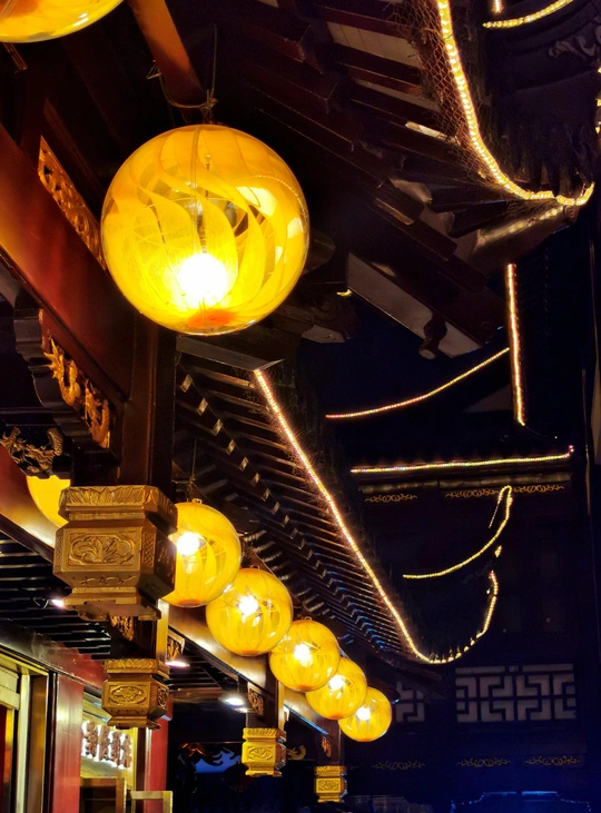 最近豫园内部在装修,不过去踩点了下,很多建筑外围边沿的装饰灯已经翻新安装试调了,大雪已至,期待虎年豫园看灯会哟~