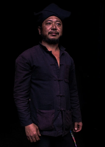 着哈尼传统服饰的汉子。2018年12月摄于元江羊街。