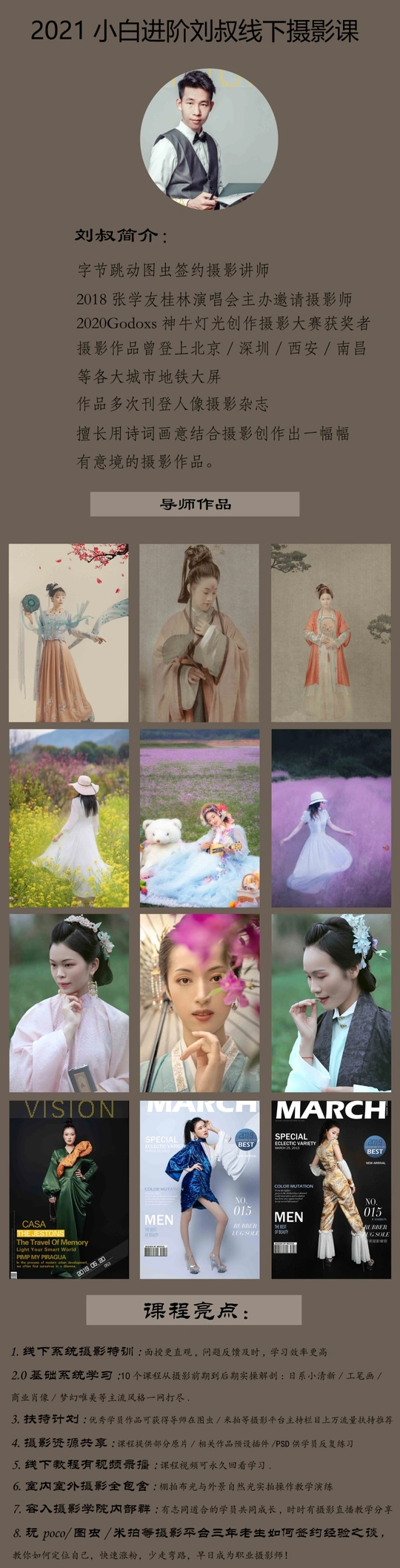 如何成为一个职业摄影师?本期课程给你答案--最近被好多同学催着刘叔快点出一期线下摄影课,其中有湖南那边的同学,远的还有台湾那边的妹子,好吧,之前都是在线上授课,突然转到线下还真有点小紧张。为了保证教学质量本期只开设5人的小班教学,名额有限,以收到课程名额定金为准,满5人既报名截止。