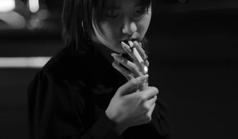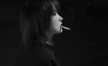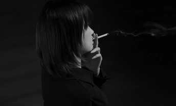 路灯下抽烟的女孩