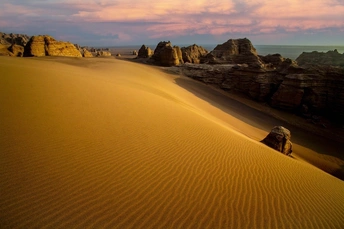 风是画笔,经年累月蠕移沙纹、雕刻雅丹。风和日丽、夕阳晚霞,把大气和谐、极富诗意的“画卷”凝固。 沙丘如丝绸般柔和,舒缓起伏;像洗过一样干净,细腻明亮,毫无保留地呈现温柔与美丽。雅丹排空怒浪、复归平静,承诺用恒古不变的守候,将沙丘的子子孙孙拥抱在怀中,默默回报。 明和暗、冷和暖、柔软与锋利……意外窥探到了魔鬼的柔情一面。