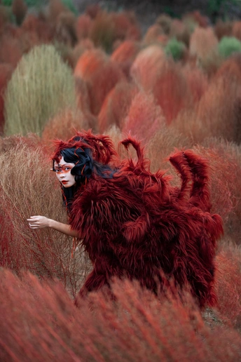 有兽焉,其状如貆而赤豪,其音如榴榴,名曰孟槐,可以御凶 形似豪猪,全身长有红色的毛,可用其抵御凶险。