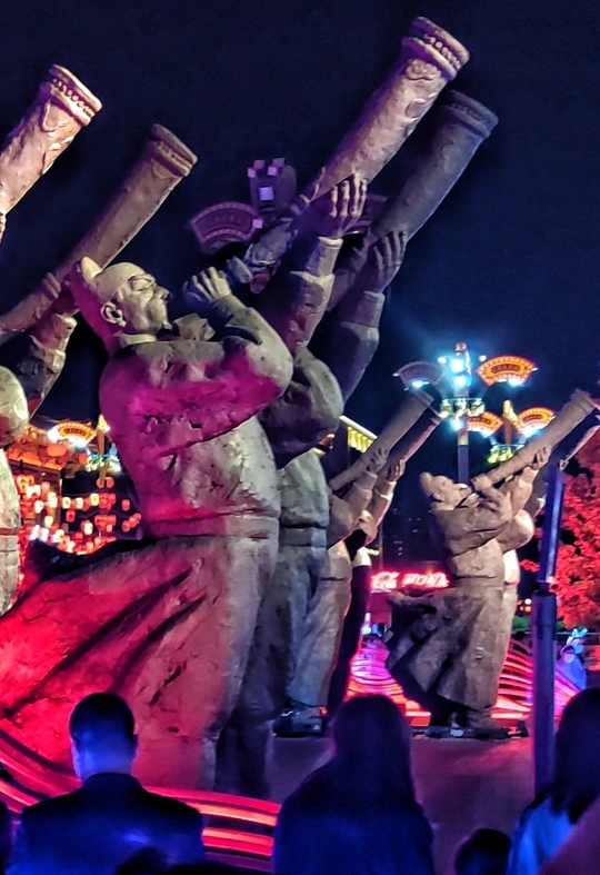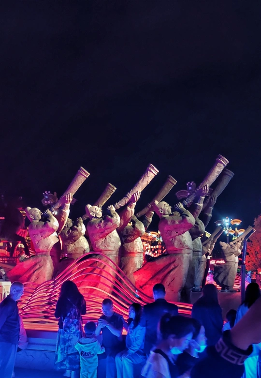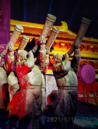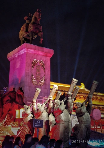 西安 大唐不夜城 一个充满了浓厚的 唐代历史文化的5A景区 入夜 那组大唐吹奏的群雕 在魔幻般光影映照下 熠熠如生,气势如虹 勾勒出一幅活灵活现的 唐朝繁华景象。 摄地:西安大唐不夜城 拍机:小米9 mepai.me/sunge 20210516果果F拍