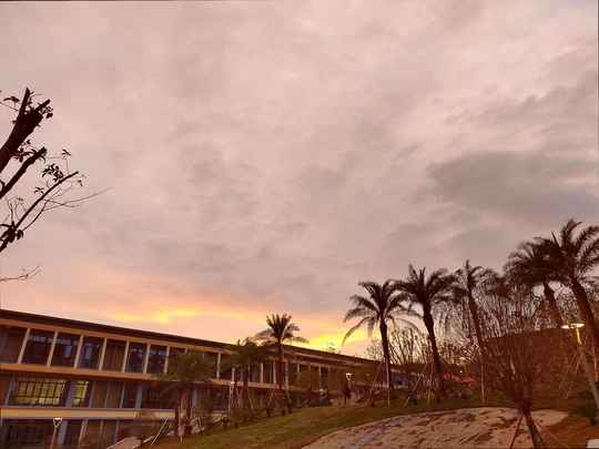 那天,天朗气清,惠风和畅,下午六点多我拿起篮球准备去往篮球场,路过教学楼时看到了此刻的一幕,真的很好看,!