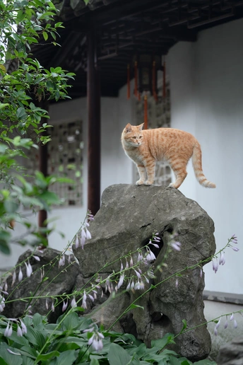 今年夏天热级了,见老咪一面也不容易。不过小家伙还挺惬意的,枇杷下,栀子花下,玉簪花丛中来回穿梭。