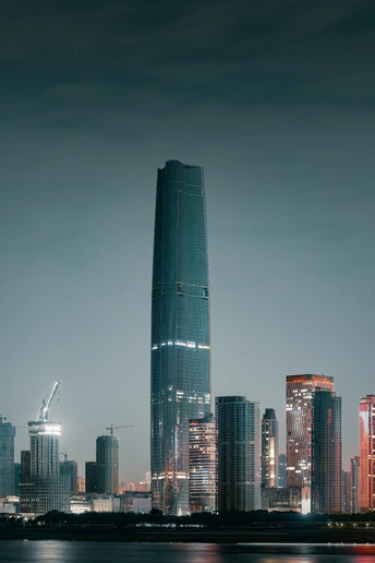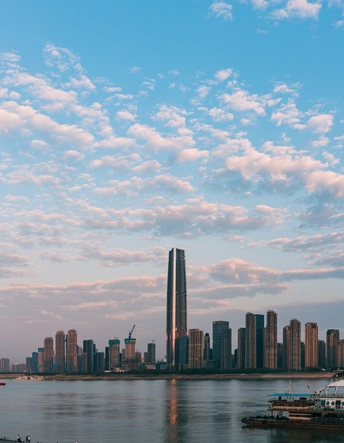 拍摄于2022.11.08,武汉市江岸区江滩观景台,绿地中心夕阳时分和晚上灯光秀时分