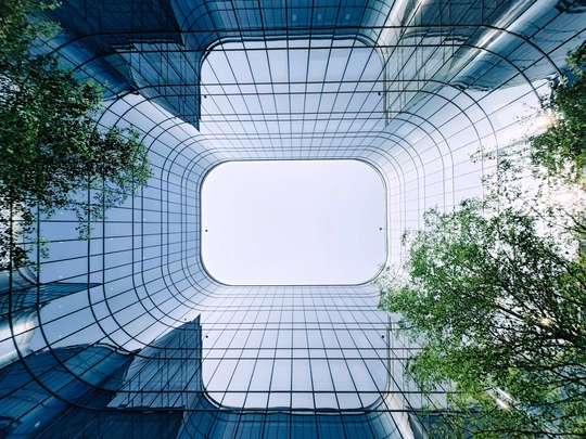一座建筑的中庭,向上看的时候有一种坐井观天的感觉